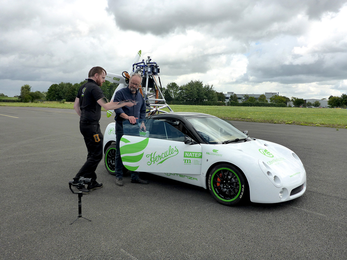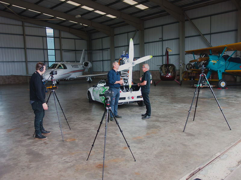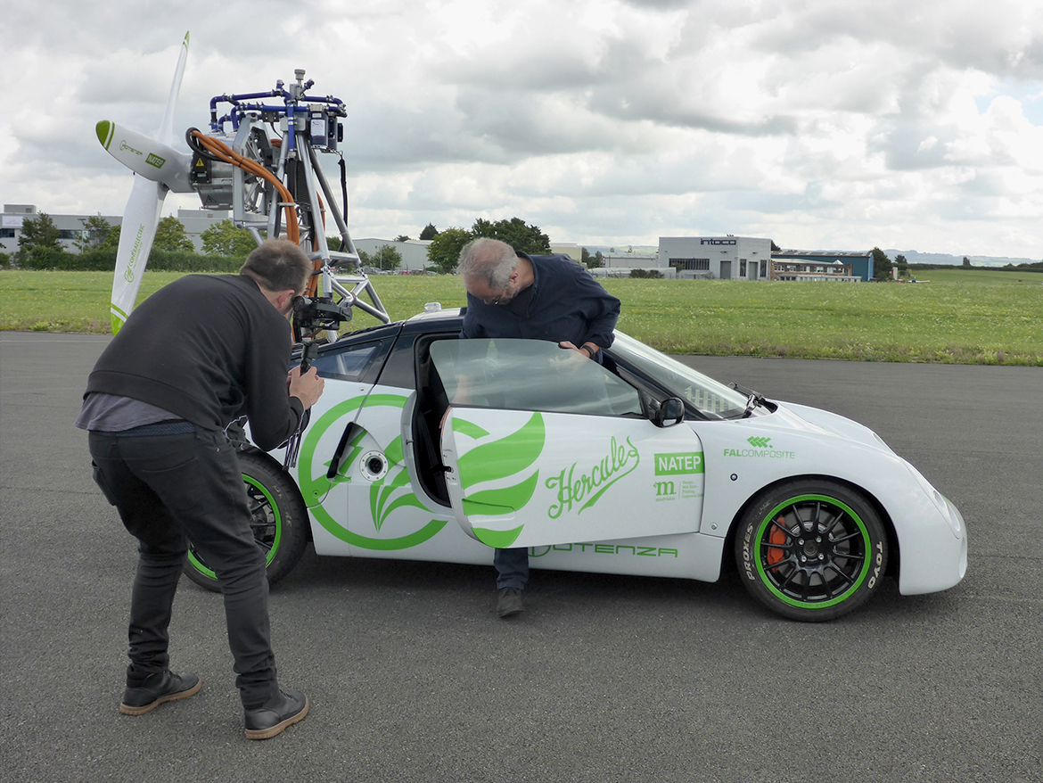 We recorded content for Robert Llewellyn’s “Fully Charged” u-tube program yesterday at Gloucestershire Airport. The program will go out in about one month’s time.